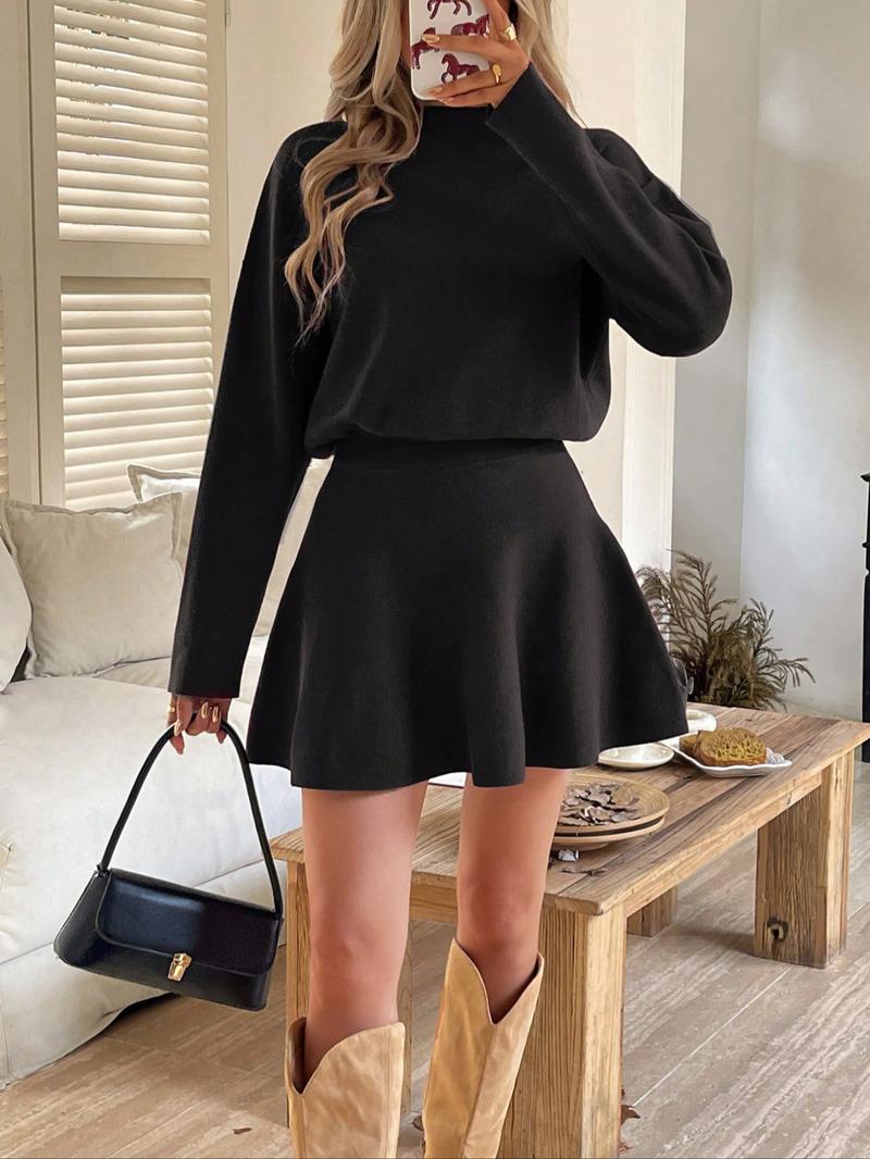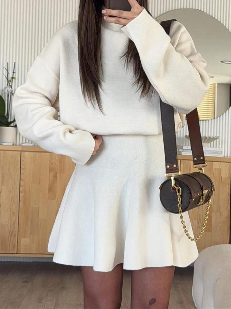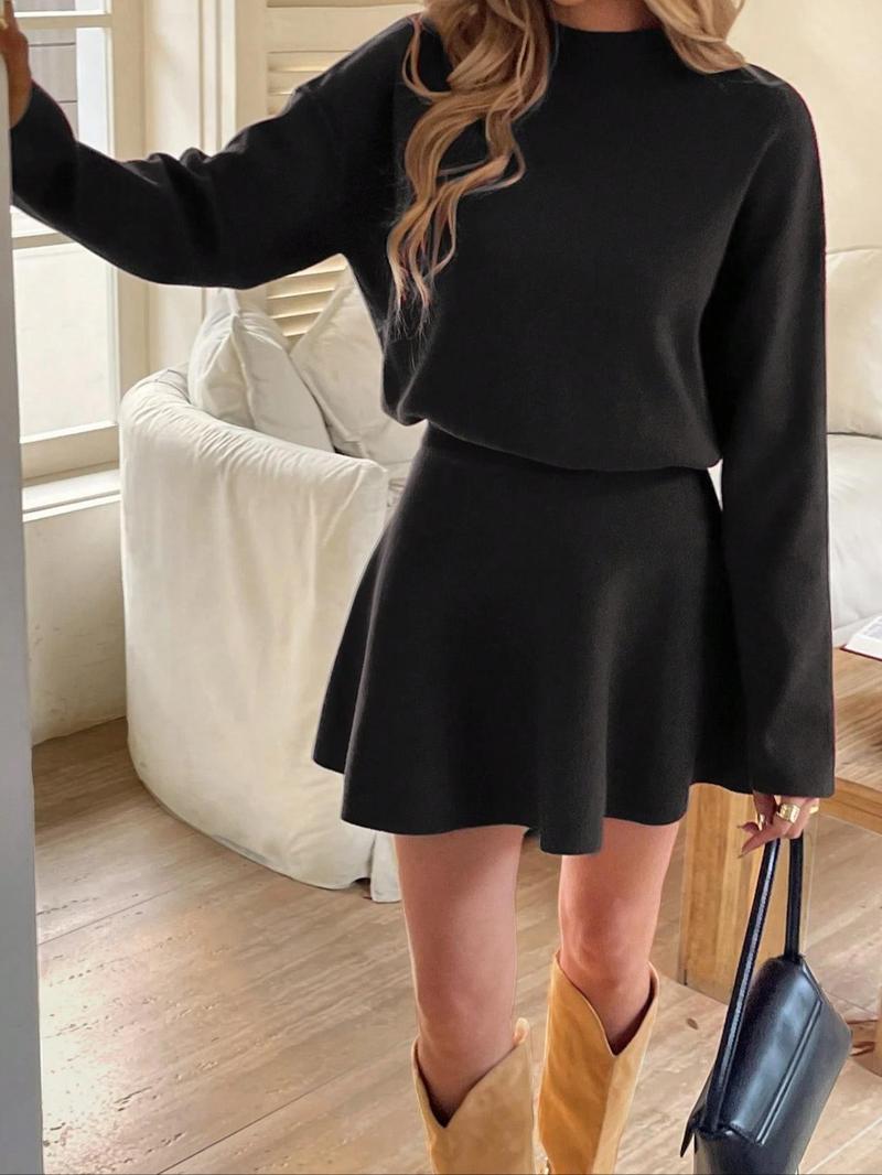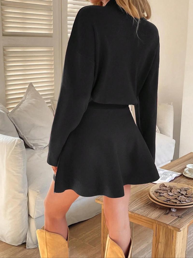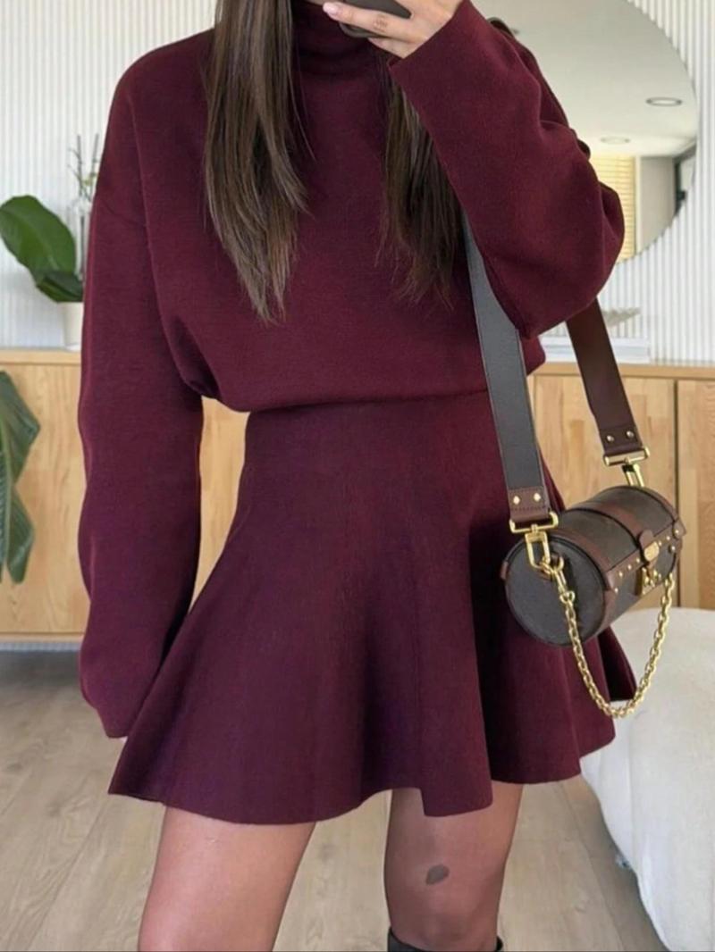 Women'S Elegant Autumn Winter Commuter Dress, Waist Cinched Short Skirt, Stylish Ladies' Clothing for Office Wear